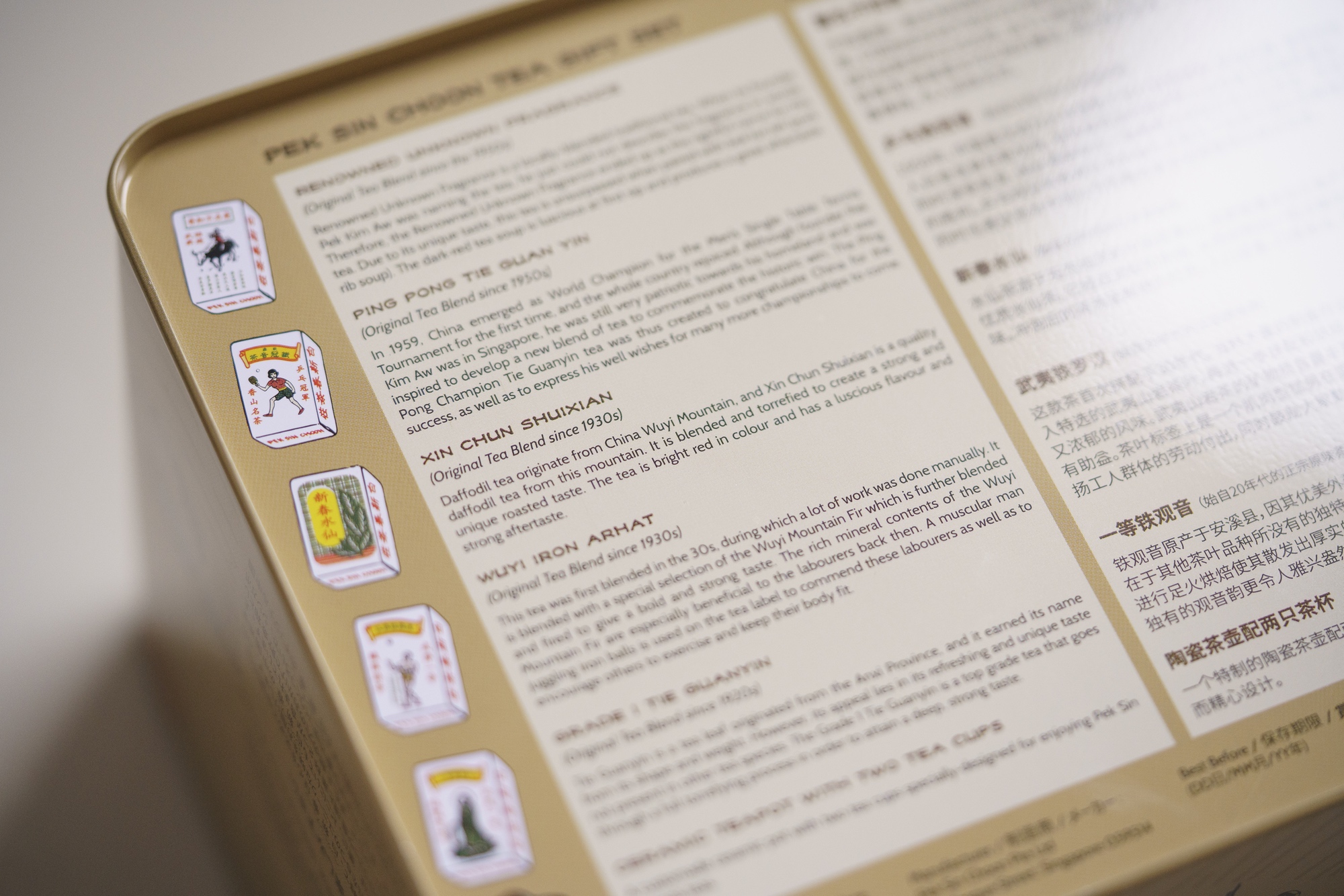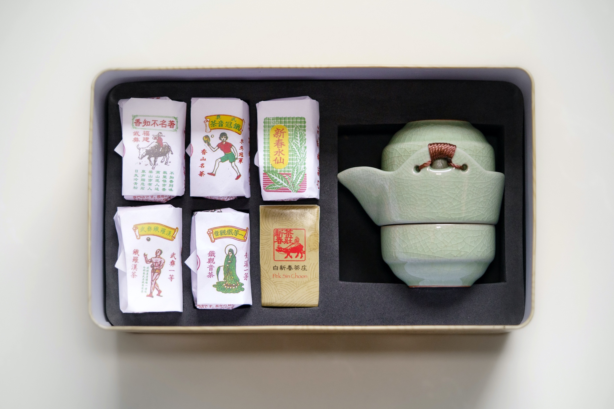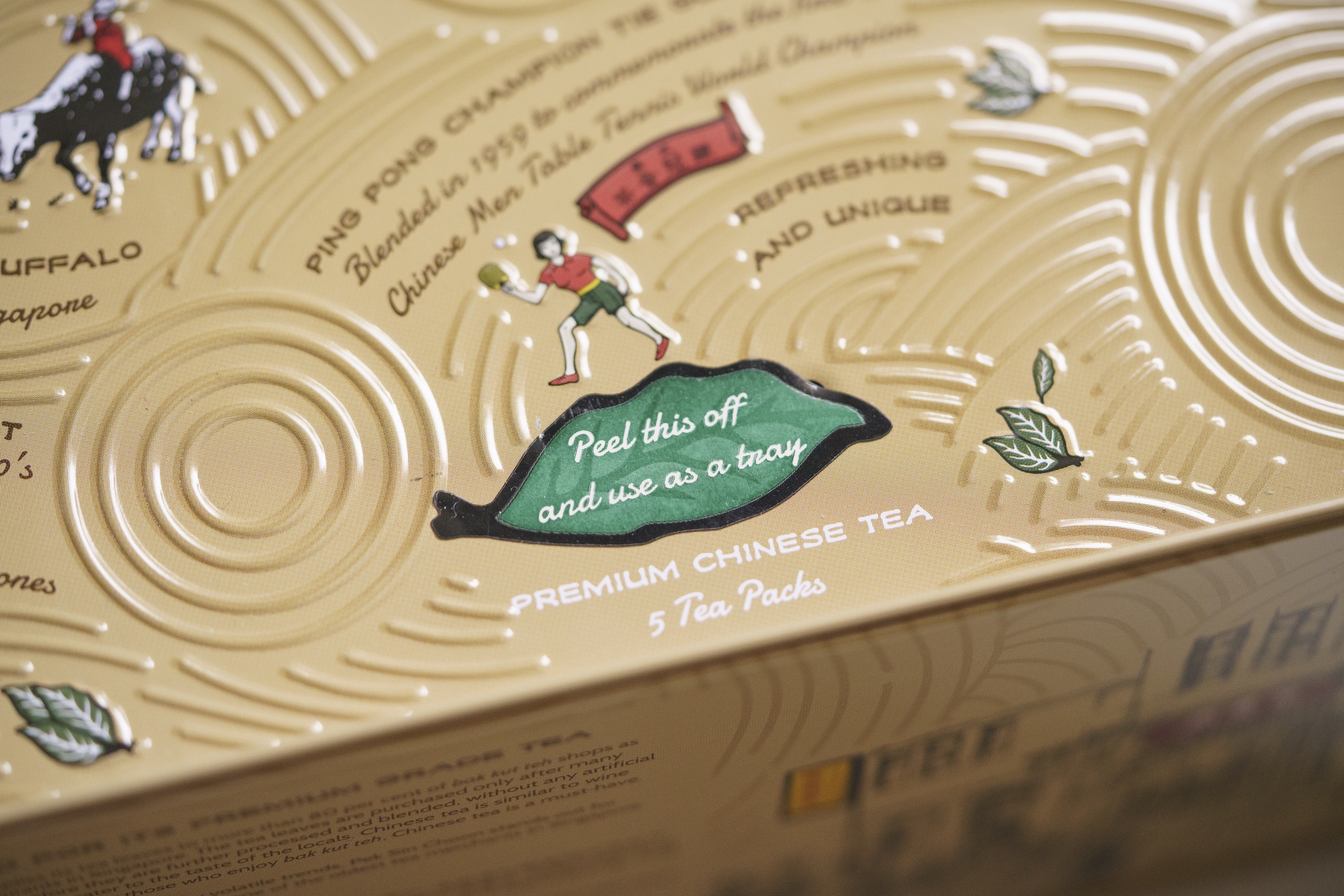 - 5 custom sized house blend tea leaves with Nanyang flavours in traditional paper wrap packaging