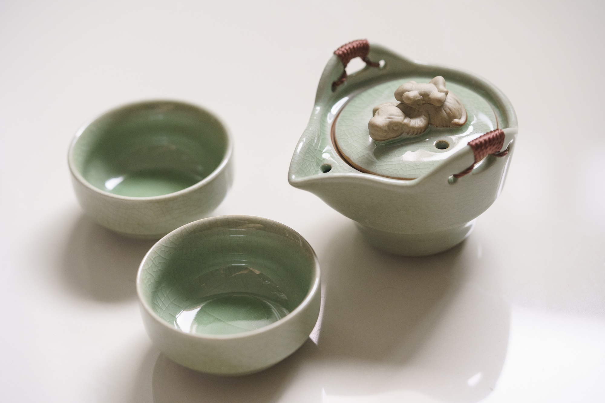 - Custom made limited edition “Sherpherd Boy on Buffalo” Ge Ware Tea Set consisting of a teapot, lid and 2 cups that can be carried around easily